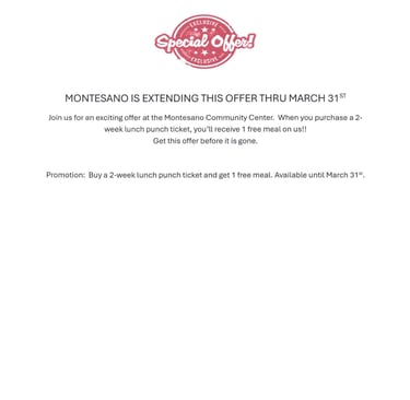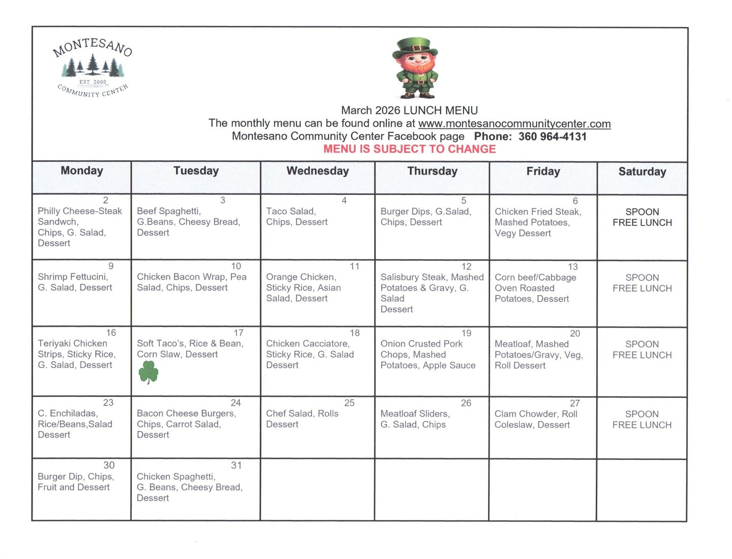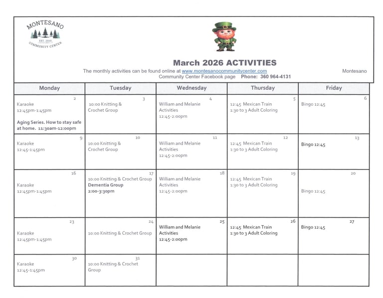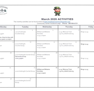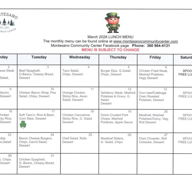 The Montesano Community Center, a dedicated 501(c)(3) non-profit, has been a cornerstone for the local community since 2000, particularly focusing on the needs of senior citizens. In 2023, the center proudly served over 20,000 nutritious meals, averaging nearly 80 meals per day. Beyond meal services, the center fosters social connections among seniors through engaging activities like bingo, board games, Mexican train and line dancing. Volunteers play a vital role by helping prepare and deliver meals at the Center and to shut-ins who are unable to visit the center, promote activities and serve as leaders on the Center's Board of Directors. The Montesano Community Center stands as a welcoming hub, encouraging camaraderie and support among the senior population, enriching their lives with both nourishment and friendship.